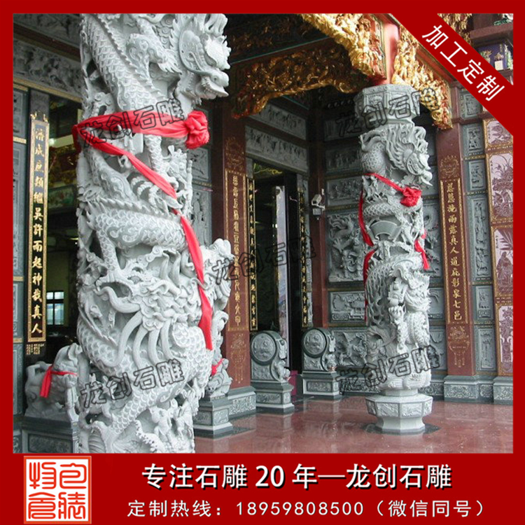 最后,石雕龍柱可以起到裝飾作用。美好的石雕作品總是能得到人們的欣賞,而且一定程度上,對于商場的人氣和生意也起到很好的作用。石雕這種工藝的展示讓石雕龍柱的發展更加迅速,也會讓更多人喜歡和了解到石雕龍柱,并且能欣賞到這種非常獨特之美。