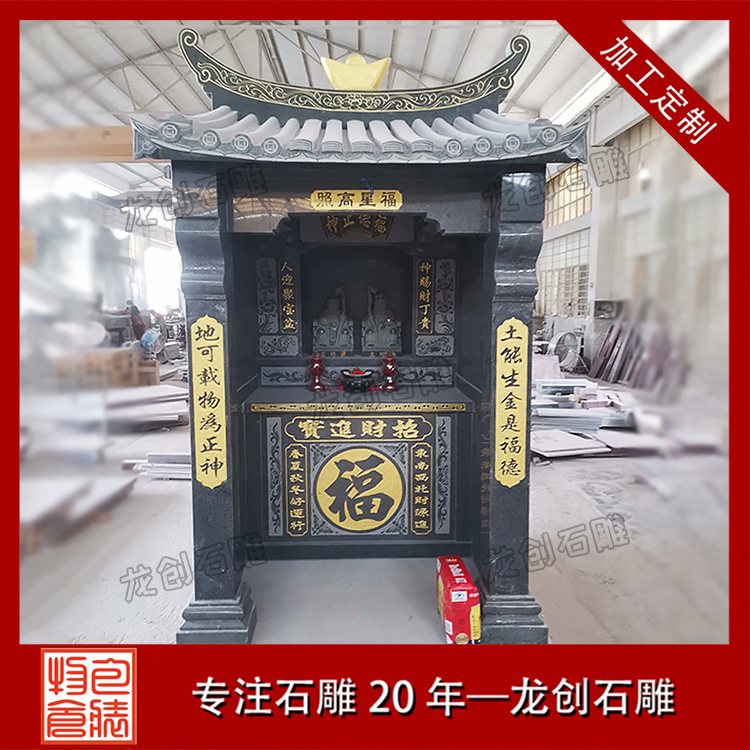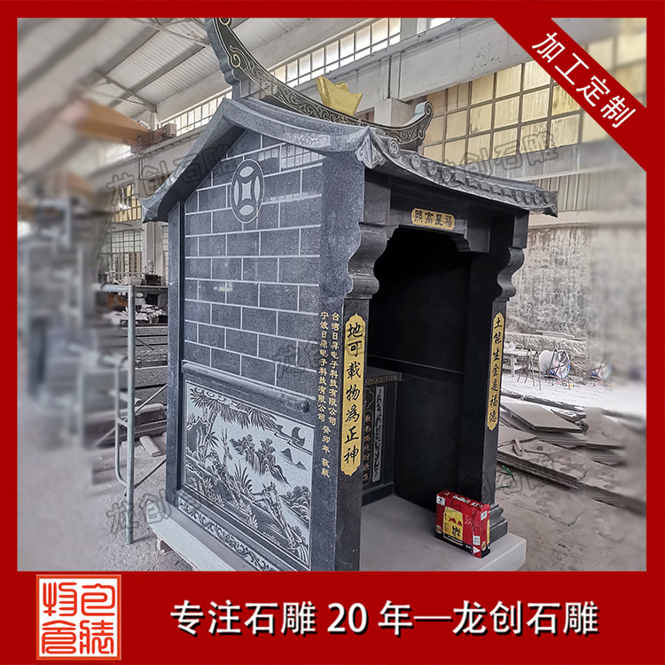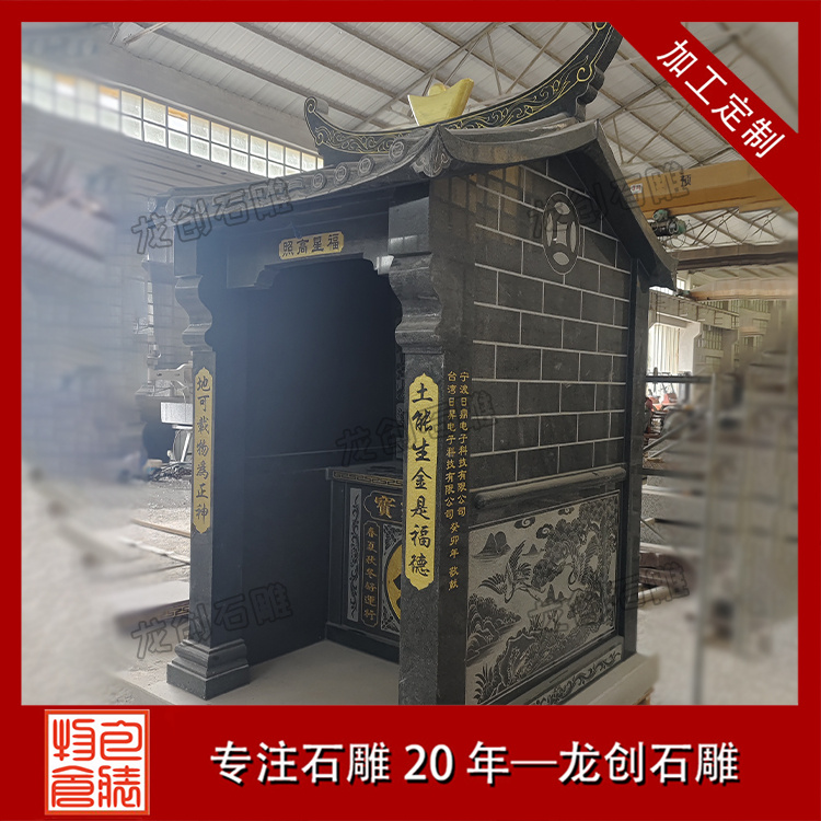 在浙江寧波的金蓮寺改造項(xiàng)目中,一座精美的石雕土地廟成為點(diǎn)睛之筆。這座土地廟采用優(yōu)質(zhì)芝麻黑654石材,質(zhì)地堅(jiān)硬,色澤溫潤(rùn)。廟身的雕刻工藝精湛絕倫,高2.9米,寬1.36米,深度1.63米,整體造型古樸典雅,遵循傳統(tǒng)廟宇建筑風(fēng)格,飛檐斗拱線條流暢,比例協(xié)調(diào);墻體厚實(shí),雕紋精美,線條流暢。其內(nèi)部空間布局合理,土地神像安置其中,更顯威嚴(yán)。