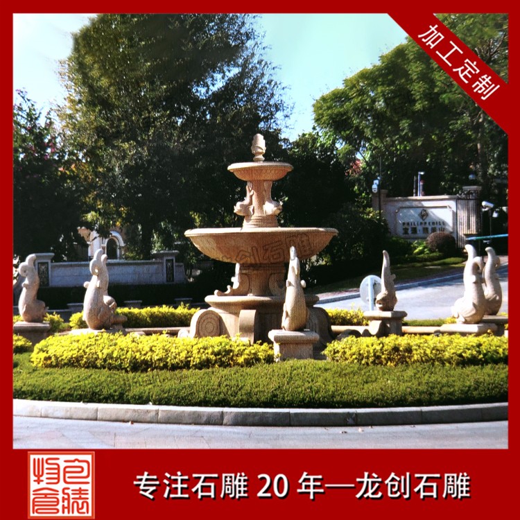 相比埃及米黃石雕水缽,黃銹石、黃金麻噴泉的特點:銹石石材在南北方都有,南方主要以福建銹石為主,黃銹石和黃金麻兩者顏色接近,均無放射性,所以對人們的健康無影響。兩者主要區別在于花色分布和色度上。黃銹石表面幾乎分布小花,分布密集,比較受客戶喜愛,其色彩黯淡、泛灰。而黃金麻花色分為大花、中花、小花,顏色呈現金黃色或暗黃,其耐腐蝕性高,不會褪色,所以不怕風吹日曬。適用于園林。
