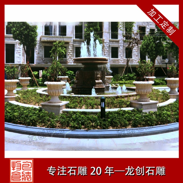 園林景觀石雕噴泉水缽雕塑是一種石材做成的盆狀或者罐狀的石雕作品,一般來說周邊有雕刻的紋路以及雕刻的附加飾品,然后組合成一個比較大的裝水,儲水的容器,并且部分石雕噴泉雕塑利用水壓把水從石雕噴泉雕塑的上端噴或者流出,形成一種特別的景象的石雕產品。石雕噴泉雕塑作為一種裝飾產品,所以一般適用于比較高檔的裝飾,不過隨著社會的發展,現在的水平高中低檔的價格可以滿足不同客戶的需求,從高端裝飾慢慢的成為了家居擺件,公司擺件,公園擺件,景區擺件等等。