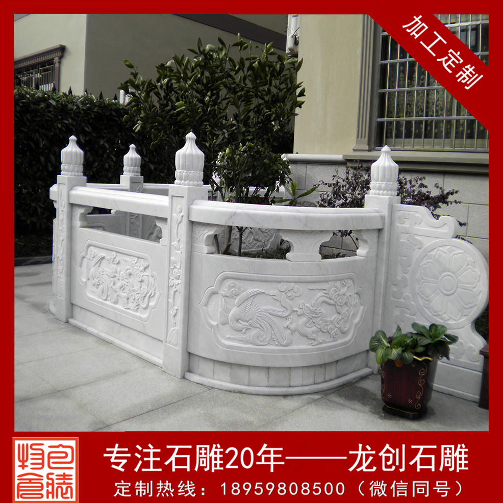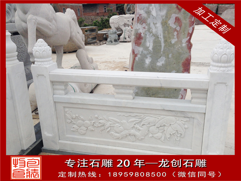 大理石欄桿是我國傳統(tǒng)建筑最常見的組成部分,無論是在走廊、橋邊、花池、園囿、樓閣、臺榭等,都要用欄桿圍護避免發(fā)作危險。特別是在園林建筑傍邊,石雕欄桿是不可或缺的,既能夠攔隔圍護,將不同的區(qū)域區(qū)分開來,又不會將各個區(qū)域之間的聯(lián)系阻斷,特別是欄桿上的圖畫還能夠點綴環(huán)境。