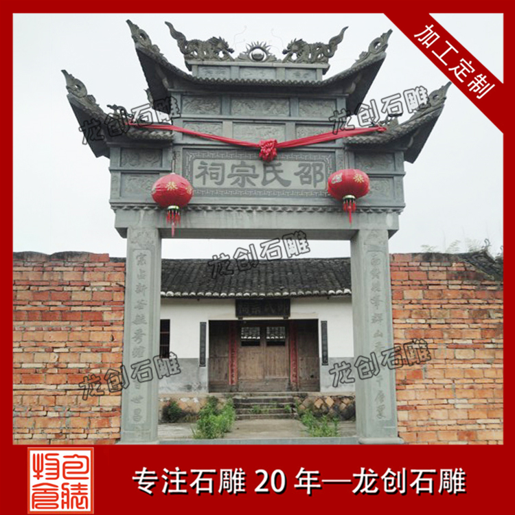村門牌坊雕刻是一個村莊的門面,同時也具有裝飾的作用,有些道路比較窄,那就要選擇農村簡易門樓牌坊,一般也被稱為單門牌坊。牌坊并不是越大越好,只有適合的才是好的。